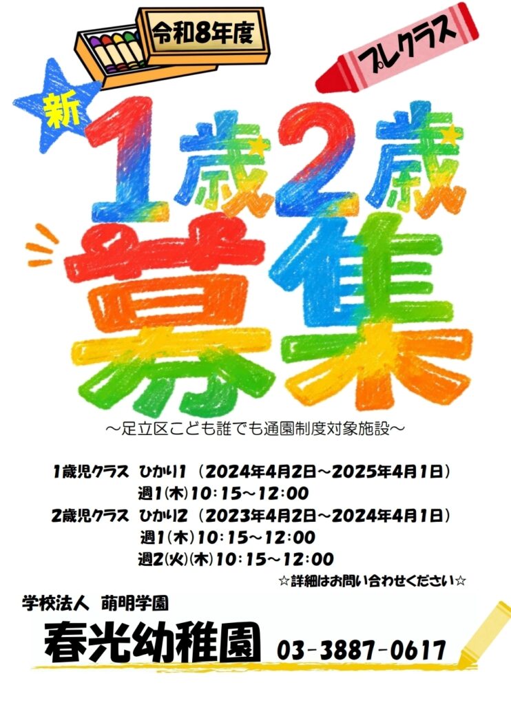 令和7年度プレ保育(2歳児クラス)募集中です!
